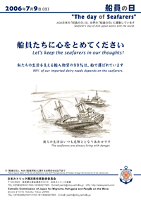 教皇庁難民移住者評議会は、7月の第2日曜日(2006年7月9日)を「船員司牧の日」(Sea Sunday)と定め、世界中の信徒に船員たちのために祈るよう呼びかけています。 船員の日2006 ポスター「船員」というと、陸で […]