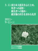 2011年3月11日の東日本大震災から6か月となる9月11日(日)、カトリック中央協議会と日本キリスト教協議会の共催で、「3.11東日本大震災を心にとめ、死者への追悼・被災者への慰め・被災地の再生を求める礼拝」を開催することになりました。大震災から半年を経て、新たにこの出来事を心にとめ、共にすべての人々と結び合いながら、犠牲者を追悼し、被災者の慰めと再生のために祈りたいと思います。