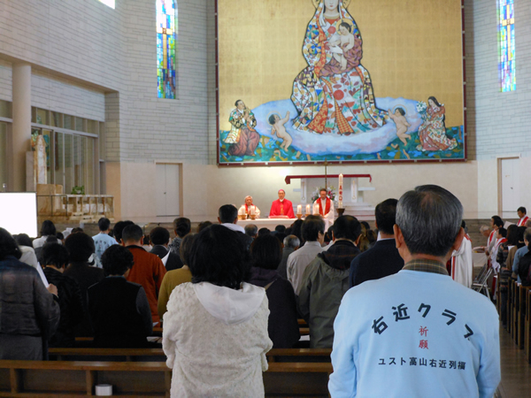 ユスト高山右近の列福を願うミサが、2月2日14:00から大阪カテドラル聖マリア大聖堂で、池長潤大司教の司式、20人の司祭の共同司式によってささげられました。約550人の信徒が参加して、列福を熱心に祈り求めました。