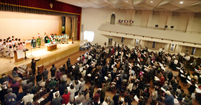 カトリック司教協議会列聖列福特別委員会は、大阪教区(池長潤大司教)と共に2月3日、ユスト高山右近の列福祈願ミサと講演会を開催、会場の大阪・城星学園講堂には約800人が集った。400年前のキリシタン大名右近の生涯を知ることで、神がへりくだられた意味を深く理解し、キリスト者であることの使命を再確認する機会となった。 カトリック新聞オンラインより